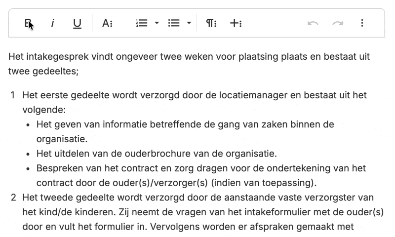 Met de tekstverwerker kun je tekst opmaken zoals je gewend bent. Dit zijn de belangrijkste opties: